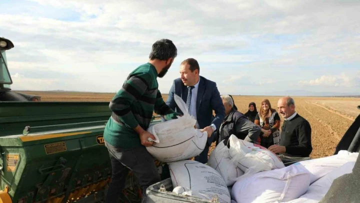 Eskişehir İl Tarım ve Orman Müdürlüğü 'Eskişehir de Hanımlar Hayvanlarını Sarp Çeşidi Tritikale ile Besliyor' projesi çerçevesinde kadın çiftçilere tritikale tohumu desteği verdi.