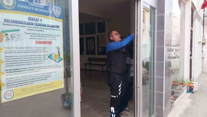 Eskişehir'de Toplum Destekli Polislik Şube Müdürlüğünce, Polis-Halk ilişkilerini geliştirmek, suç oluşmadan önce önleyici polislik kapsamında bilgilendirme faaliyetleri gerçekleştirildi. Bu kapsamda vatandaşların dolandırıcılık suçunun mağduru olmalarının engellenmesi amacıyla özellikle yaşlı vatandaşların bulunduğu camiler, cami, dernekleri ve kıraathanelerde bilgilendirme çalışmaları ekiplerce yapıldı. Bu çalışmalar sırasında vatandaşların yoğun olarak bulunduğu kalabalık noktalara ve umuma açık yerlere dolandırıcılık konularıyla ilgili şube müdürlüğü tarafından hazırlanan afişler asıldı. İl merkezinde bulunan 63 banka şubesi ziyaret edilerek, özellikle sürekli telefonla konuşarak panik halinde olduğu görülen ve yüksek miktarda para çekmek/transfer yapmak isteyen yaşlı vatandaşları işlemlerinde mutlaka vatandaşların dolandırıcılık konusunda uyarılması, dolandırıcılık şüphesinin oluşması durumunda 112 Acil Çağrı Merkezi'nin aranması yönünde gerekli bilgilendirme yapılırken, banka şubelerine uyarıcı afişler asıldı.