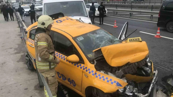 Fatih'te Türk Hava Yolları'nın boş servis minibüsü, şoförünün direksiyon hakimiyetini kaybetmesi sonucu, seyir halindeki taksiye çarptı. Çarpmanın etkisiyle bariyerlere daha sonra park halindeki başka bir araca çarpan taksinin sürücüsü ağır yaralandı.