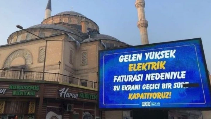 Sosyal medyaya bugün düşen bir fotoğraf, elektrik faturalarının geldiği boyutu bir kez daha göz önüne serdi. Hakkari Yüksekova'da şehrin en işlek caddesinden çekilen fotoğrafta, bir reklam panosunun üzerinde, 'Gelen yüksek elektrik faturası nedeniyle bu ekranı geçici bir süre kapatıyoruz.' yazıları görüldü.