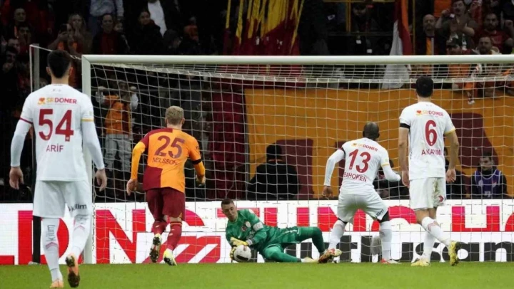 Galatasaray'ın Uruguaylı file bekçisi Fernando Muslera, Kayserispor maçının 45. dakikasında Stephane Bahoken'in kullandığı penaltıyı kurtardı.