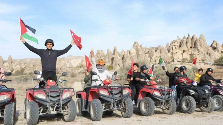 Yapılan basın açıklamasının ardından grup ATV motorları ile ellerinde Türk ve Filistin bayrakları ile Kapadokya vadilerinde tur attı.