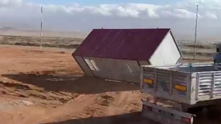 Sivas'ta şiddetli fırtınaya dayanamayan konteyner ev kağıt gibi savruldu.