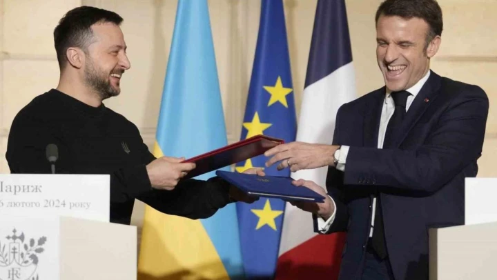 Fransa Cumhurbaşkanı Emmanuel Macron, Ukrayna Devlet Başkanı Vladimir Zelenskiy ile Kiev'e 3 milyar euro değerinde askeri yardım gönderme taahhüdünü içeren bir güvenlik anlaşması imzaladı.