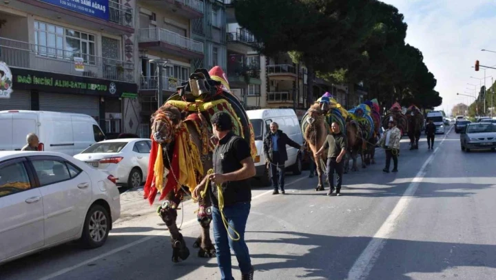 Germencik Belediyesi öncülüğünde gerçekleştirilecek olan deve güreşi öncesinde, sokağa inen pehlivan develer görücüye çıkarken, ilçe turu gerçekleştirildi.