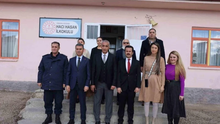 Gölbaşı Belediye Başkanı Ramazan Şimşek, Gölbaşı Kaymakamı Erol Rüstemoğlu, Kaymakam Refiki Ejder Şahin, Gölbaşı İlçe Jandarma Komutanı Mikail Arıkan, Gölbaşı İlçe Milli Eğitim Müdürü Serap Yılmaz ve Hacıhasan Muhtarı Mükerrem Çelik, Hacıhasan İlkokulu'nu ziyaret etti.