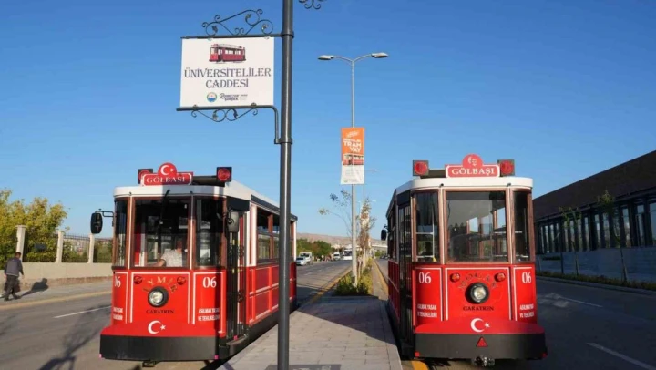 Gölbaşı Belediye Başkanı Ramazan Şimşek'in Büyük Gölbaşı Merkez Projesi kapsamındaki projelerinden biri olan, yerel esnafa önemli katkı sağlaması da beklenen nostaljik tramvay, seferlere başladı.