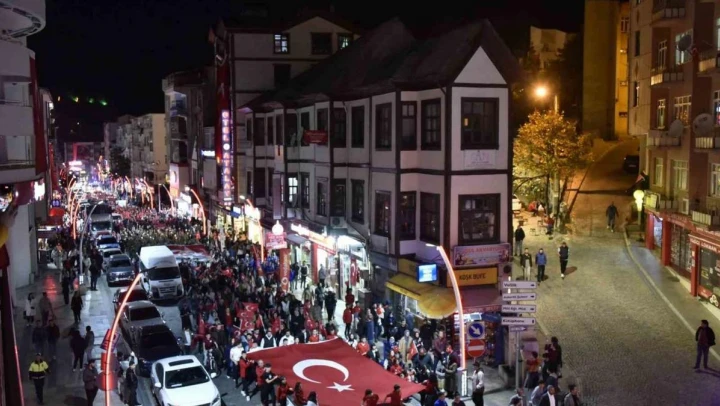 Gümüşhane'de Cumhuriyet'in 100. yılı kutlamaları kapsamında son olarak yaklaşık 2 bin kişinin katılımıyla fener alayı yürüyüşü gerçekleştirildi.