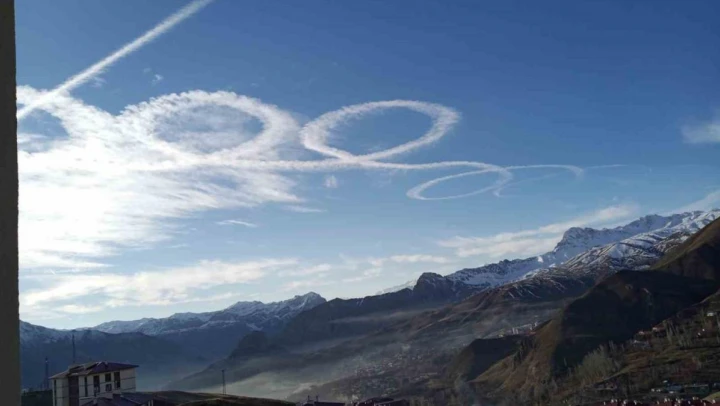 Hakkari'de bu sabah uçağın gökyüzünde daireler çizerek bıraktığı izler ilginç görüntüler oluşturdu. Yaklaşık 3 saat süreyle Hakkari semalarında yaşanan ilginç olayı izleyen vatandaşlar, yaşananlara anlam veremedi.