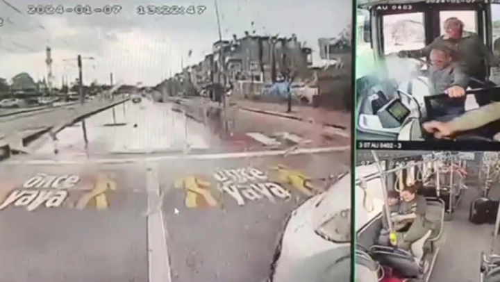 Kaza anıysa halk otobüsünün kameralarına saniye saniye yansıdı. Görüntülerde seyir halinde giden halk otobüsünün önüne bir anda hafif ticari aracın çıkması ve çarpışmanın şiddetiyle otobüsün içerisindeki yolcuların panik anları yer aldı.