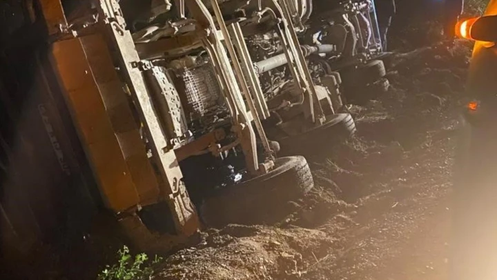 Hatay'da beton taşıyan kamyon devrildi