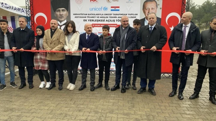 Deprem bölgesi Adıyaman'da, Hırvatistan'ın katkılarıyla UNİCEF tarafından yaptırılan Adıyaman Ticaret ve Meslek Teknik Anadolu Lisesinin ek yerleşkesinin açılışı, Hırvatistan Dışişleri ve Avrupa İşleri Bakanı Gordan Grlic Radman tarafından yapıldı.