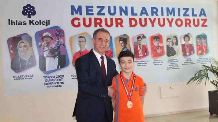 Türkiye şampiyonu olan öğrencisiyle buluşan İhlas Koleji Genel Müdürü Bedri Yeltekin, başarılı sporcuyu tebrik etti. Osman Tuğra Kula'nın Türkiye şampiyonu olarak İhlas Koleji ailesine büyük bir mutluluk yaşattığını belirten Yeltekin, 'Genç yaşta böylesine büyük bir başarıya imza atan öğrencimizi kutluyoruz. İhlas Kolejini en iyi şekilde temsil eden öğrencimiz inanıyoruz ki ileride çok önemli başarılar kazanacaktır. Kendisine Romanya'da düzenlenecek olan Balkan Şampiyonası'nda başarılar diliyoruz' dedi.