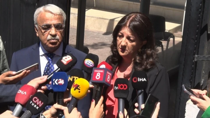 DEM Parti İmralı heyeti, Cumhurbaşkanı Recep Tayyip Erdoğan ile yapacağı görüşme öncesinde Genel Merkez'de Eş Genel Başkanları Tülay Hatimoğulları ve Tuncer Bakırhan ile bir araya geldi. Heyet dün İmralı'da bölücü terör örgütü elebaşı Abdullah Öcalan ile yaptığı görüşmeye ilişkin bilgilendirme yapmıştı, Cumhurbaşkanı Erdoğan'la yapılacak görüşmeye ilişkin de görüş alışverişinde bulunan heyet, Cumhurbaşkanı Erdoğan ile görüşmek için yola çıktı. Öncesinde ise basın mensuplarının sorularını İmralı heyetinden Pervin Buldan ile Mithat Sancar cevapladı.