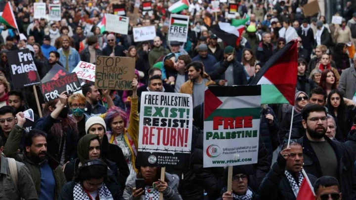 İngiltere'de 300 bin kişi Gazze Şeridi'nde 'ateşkes' için yürüdü
