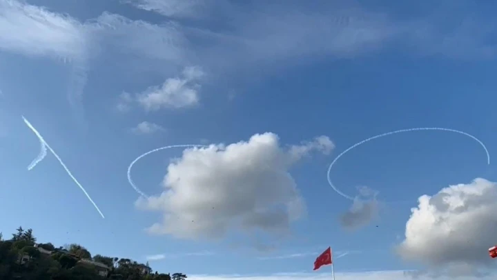 Türk Yıldızları ve SOLOTÜRK, Cumhuriyet'in 100. yılı kutlamaları çerçevesinde İstanbul Boğazı'nda gösteri uçuşu gerçekleştirdi. Türk Yıldızları, havada '100' çizdi.