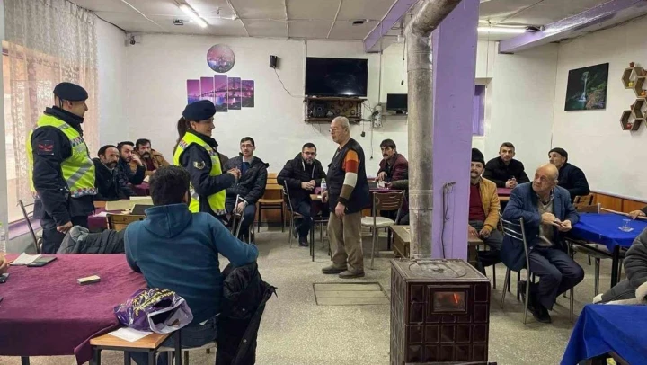 Jandarma ekiplerinden kahvehanede trafik eğitimi