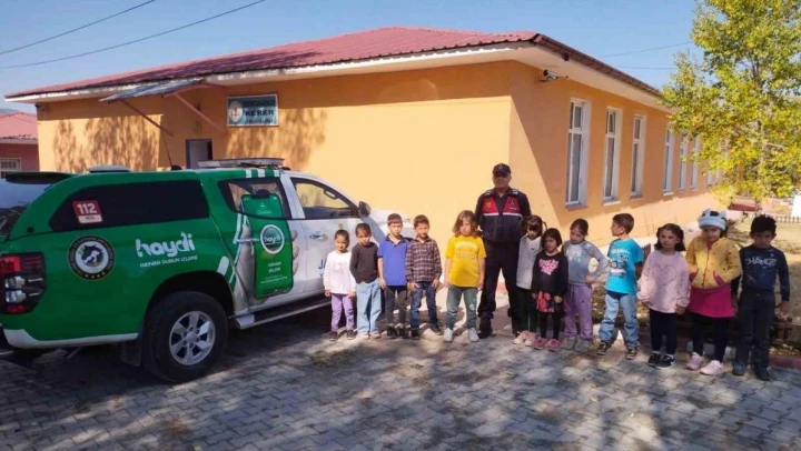 Jandarma minik öğrencilere hayvan sevgisini aşılıyor