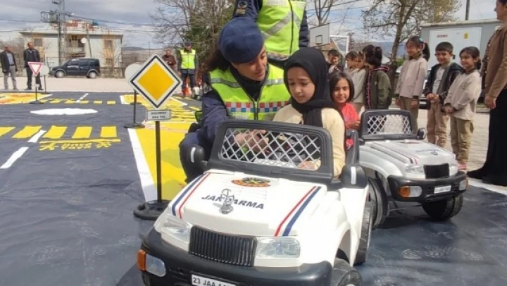 Elazığ'da İl Jandarma Komutanlığı ekipleri öğrencilere trafik güvenliği eğitimi verdi.