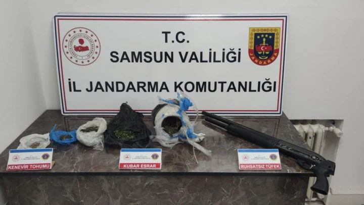 Olay, Samsun'un İlkadım ilçesinde meydana geldi. Edinilen bilgiye göre, İl Jandarma Komutanlığı Kaçakçılık ve Organize Suçlarla Mücadele (KOM) Şube Müdürlüğü, İstihbarat Şube Müdürlüğü, Jandarma Suç Araştırma Timi (JASAT) ve İlkadım İlçe Jandarma Komutanlığı ekipleri, alınan istihbari bilgiler Z.Y.'nin evine operasyon düzenledi. Yapılan aramada, 1 kilo 453 gram kubar esrar ve 1 adet ruhsatsız av tüfeği ele geçirildi. Olayla ilgili soruşturma devam ediyor.