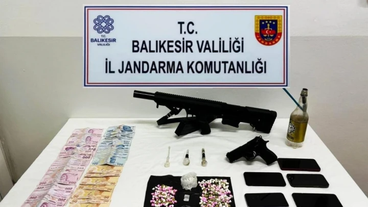 Balıkesir İl Jandarma Komutanlığı ekipleri, uyuşturucu madde imalatı ve ticaretine yönelik yürüttüğü istihbari çalışmalar neticesinde, Balıkesir'in Altıeylül ilçesinde uyuşturucu madde imalatı ve ticareti yapan şüphelilere ait hayvan çiftliği ve araçlarına yönelik geçtiğimiz gün operasyon düzenledi. Gerçekleştirilen operasyonda; 328 adet ecstasy uyuşturucu hap, 14,5 gram metamfetamin, bir gram kokain, bir sentetik uyuşturucu hap, 4 adet uyuşturucu kullanma aparatı (payp), bir tabanca, bir av tüfeği, 5 cep telefonu ve suçtan elde edilen 10 bin 180 TL para ele geçirildi. Olaya karışan 6 şüpheli ise yakalanarak haklarında adli işlem başlatıldı.