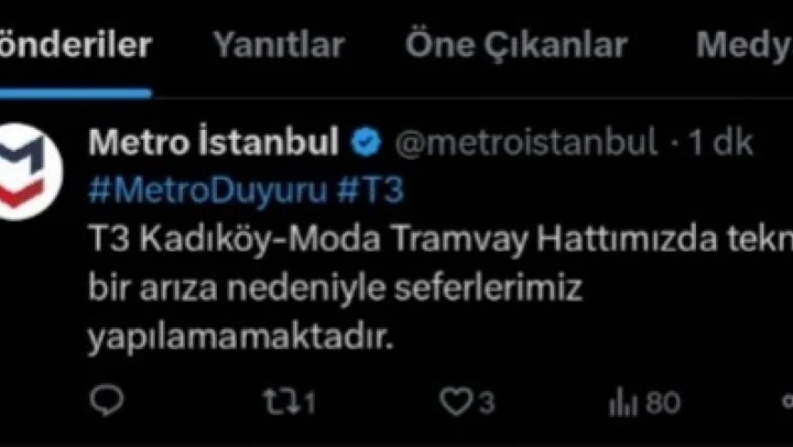 Metro İstanbul Moda Yerleşkesinde çıkan trafo yangını nedeniyle Kadıköy - Moda seferleri bir süreliğine durdu. Metro İstanbul 'X' hesabından yaptığı açıklamada, 'T3 Kadıköy -Metro tramvay hattımızda teknik arıza nedeniyle seferlerimiz yapılmamaktadır. Ekiplerin olaya müdahalesi devam etmektedir' denildi.