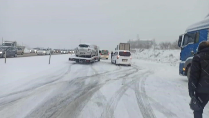 Kar Ankara-Kırıkkale yolunda ulaşımda aksamalara neden oldu