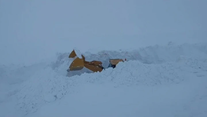 Kar kalınlığı 4 metreye ulaştı, kepçe kar içinde neredeyse kayboldu