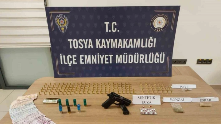Kastamonu'nun Tosya ilçesinde polis ekiplerince 1 işyeri ve 1 ikamette yapılan aramalarda uyuşturucu madde, ruhsatsız tabanca ele geçirildi. Olayla ilgili 3 şahıs gözaltına alındı.