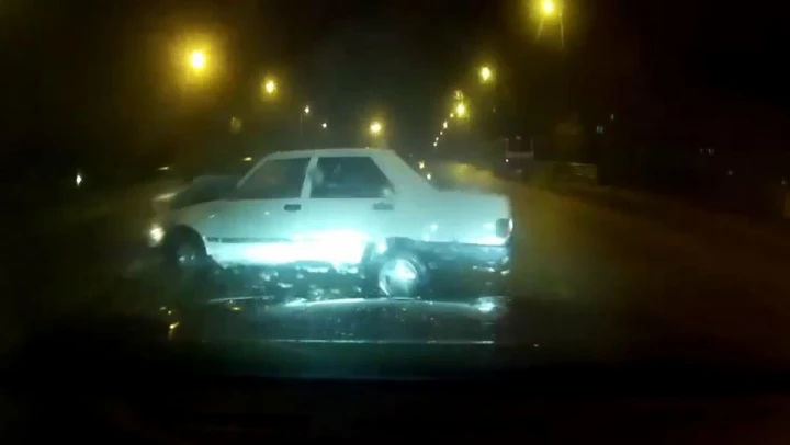 Karabük'te yağmur yağışı nedeniyle kayganlaşan yolda kontrolden çıkarak önce demir bariyere ardından varyant duvarına çarparak durabilen otomobil araç kamerasına yansıdı.