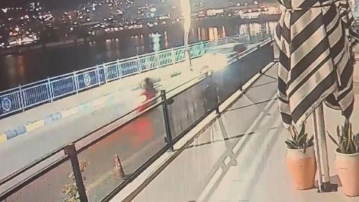Aydın'ın Kuşadası ilçesinde 1 Ocak'ta otomobilin motosiklete çarpışması sonucu meydana gelen trafik kazasında motosiklet sürücüsü ağır yaralanarak hastaneye kaldırılırken, kazanın güvenlik kamera kayıtları ortaya çıktı.