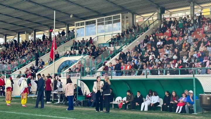 İlçe stadında saygı duruşu ve İstiklal Marşı'nın okunması ile başlayan törende, Kaymakam Mehmetbeyoğlu tarafından günün anlamına binaen konuşma yapıldı. Okulların gösterileri ve çeşitli etkinliklerde dereceye girenlere ödül töreni ve geçit töreninin ardından kutlamalar sona erdi.