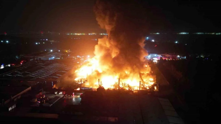 Kocaeli'de fabrikada çıkan yangın böyle görüntülendi