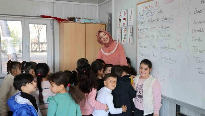 Depremin merkez üssü Kahramanmaraş'ta oluşturulan konteyner okulda 24 Kasım Öğretmenler Günü sevinci yaşandı.