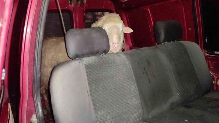 Küçükbaş hayvanı araca yükleyip kaçmaya çalışırken yakalandılar