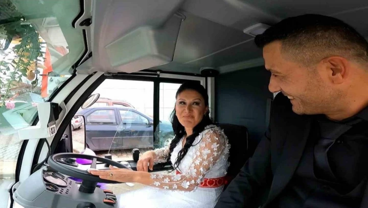 Kocaeli'de Türkan Baylan, şoförü olduğu belediyenin mini süpürge aracını gelin arabası yaptı. Süpürge aracındaki gelin ve damadı görenler gözlerine inanamazken, çiftin şehir turu renkli görüntüler oluşturdu.