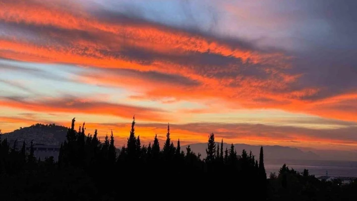 Ege Bölgesi'nin önde gelen turizm merkezlerinden biri olan Kuşadası'nda gün batımında oluşan renk cümbüşü görenleri mest etti.
