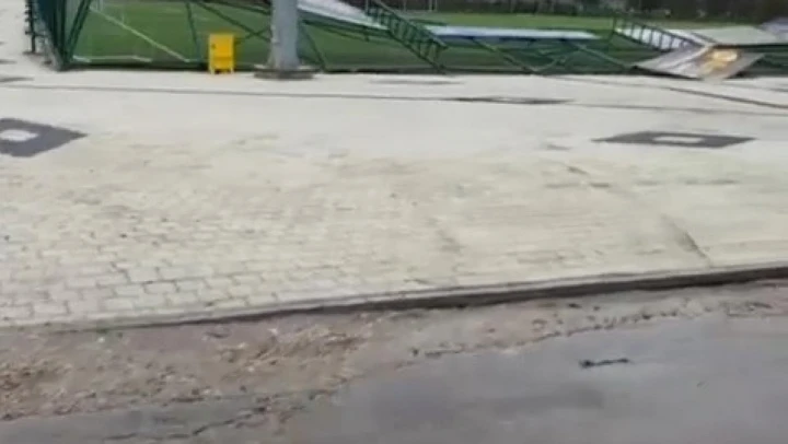 Bursa'nın İnegöl ilçesi kırsal Cerrah Mahallesi'nde yapımı tamamlanarak açılan futbol tesisi, şiddetli lodos nedeniyle hasar gördü.