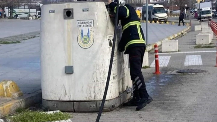 Lüleburgaz'da çöp konteynerinde çıkan yangını itfaiye söndürdü