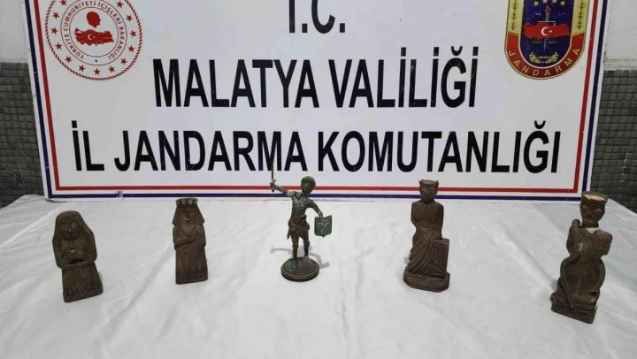 Malatya'da, jandarma ekiplerinin düzenlediği operasyonda, tarihi eser niteliği taşıyan Roma dönemine ait 5 heykel ele geçirildi.