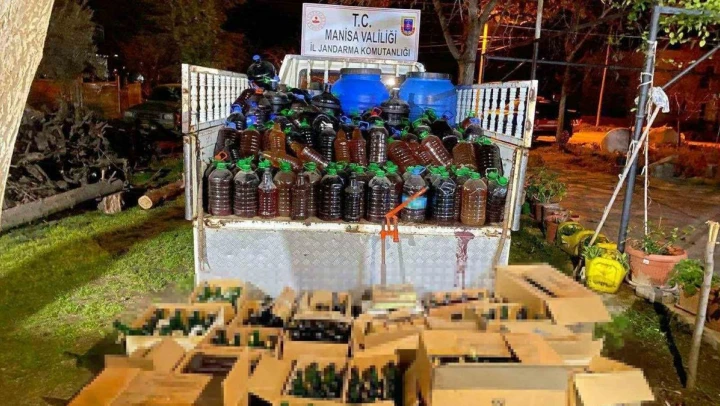 Manisa'nın Alaşehir ilçesinde Manisa İl Jandarma Komutanlığı Alaşehir İlçe Jandarma Komutanlığı ekipleri tarafından kaçak alkol bulundurulduğu istihbaratı üzerine bir evde arama yapıldı. Yapılan aramalarda bidonlar içerisinde toplam 2 bin 44 litre kaçak alkol ve 171 boş şişe ile 1 adet şişe kapatma makinesi ele geçirildi. Yapılan operasyonda F.E. olmak üzere bir kişi gözaltına alındı.