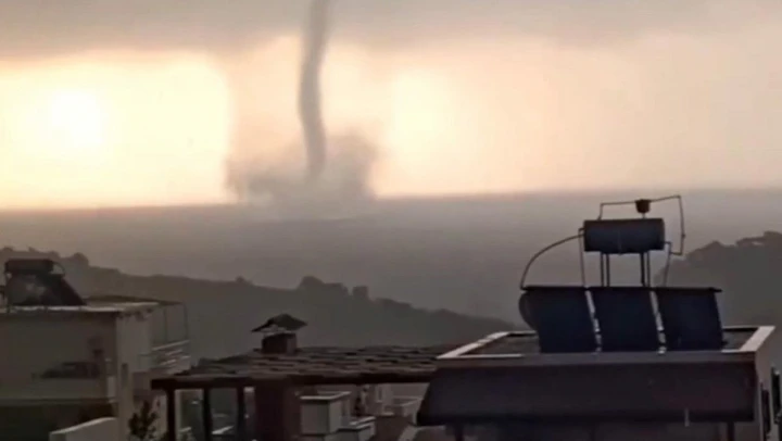 Mersin'in batı ilçelerinde sağanak yağış ve dolu etkili olurken Akdeniz'de de hortum çıktı.