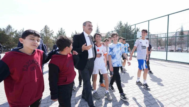 Milli Eğitim Bakanı Yusuf Tekin, Erzincan Ortaokulunu ziyaret ederek öğrencilerle bir araya geldi.