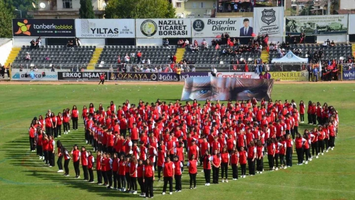 Aydın'ın Nazilli ilçesinde Cumhuriyetin ilanının 100. yıl dönümü büyük coşkuyla kutlandı. Tebrikat töreni ile başlayan etkinlikler ilçe stadında gösterilerle doruğa ulaşırken Cumhuriyet Yürüyüşü ile sokaklar adeta kırmızı beyaza büründü.