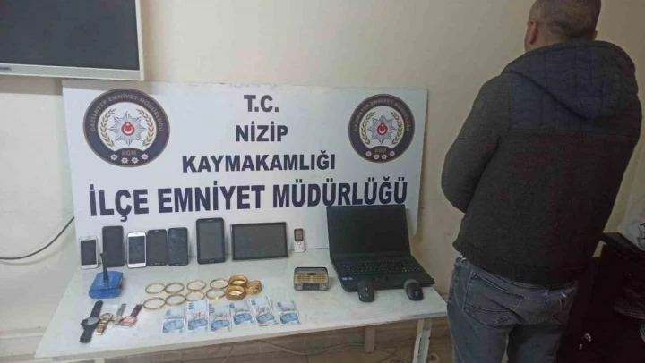 Gaziantep Emniyet Müdürlüğü'ne bağlı Nizip İlçe Emniyet Müdürlüğü ekipleri, farklı tarihlerde 2 ayrı ikamette meydana gelen hırsızlık olayları ile ilgili çalışma yaptı. Yapılan çalışmalar neticesinde, 2 ayrı evden ziynet eşyaları, para, cep telefonu, tablet, bilgisayar ve saat ile para çalınma olaylarını gerçekleştirdiği tespit edilen şüpheli çalıntı malzemelerle birlikte yakalandı.