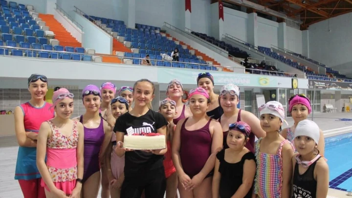 Bayburt'ta yüzme eğitimi alan öğrenciler antrenörlerinin Öğretmenler Günü'nü unutmayarak, unutamayacağı bir sürpriz yaptılar.