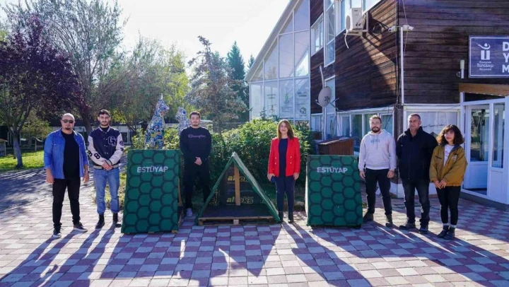 ESTÜ Yapı Kulübü Sosyal Sorumluluk Koordinatörü Onur Aktütüncü, 'Biz bu sene sosyal sorumluluk departmanını da ekledik. Bu tip sosyal sorumluluk projesiyle öğrenci arkadaşlarımıza yardım etme imkanı sunup hem de güzel projelerde birlikte olma gibi planlarımız var. Sokak köpekleri ve ihtiyacı olan köpekler için köpek kulübesi projesi yaptık. Okulumuzdaki atölyemizde kulüp üyelerimiz 20 kişi ile birlikte elimizden geldiğince kulübe yapımı gerçekleştirdik. Sonunda 3 kulübemiz oldu. Bunu da Tepebaşı belediyesi Doğal Yaşam Merkezi ile iletişime geçtik ve buraya bıraktık' dedi. Öğrenciler, Tepebaşı Belediyesi'ne sokak hayvanlarını korumak adına yaptıkları çalışmalardan dolayı teşekkür etti.