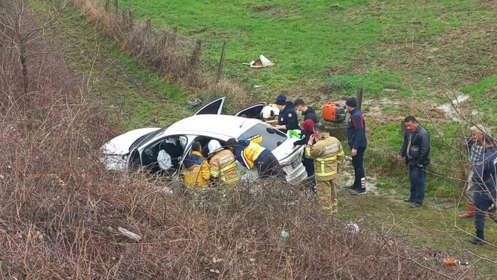 Bartın'da sürücüsünün direksiyon hakimiyetini kaybettiği otomobil, yol kenarındaki araziye uçtu. Kazada 4 kişi yaralandı.