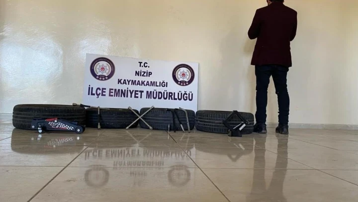 Gaziantep kent merkezinde 2, Nizip ilçesinde 5 olmak üzere toplam 7 aracın lastiklerini jantlarıyla beraber çalan şahıs, başka bir aracın lastiklerini çalmak isterken suçüstü yakalandı.