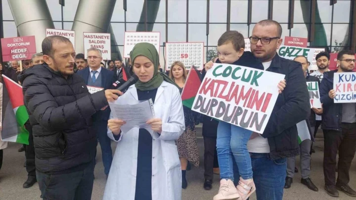Daha sonra grup adına açıklamada bulunan Tıp Fakültesi 4. Sınıf öğrencisi Amine Ahsen Geldi, 'Gazze'de 7 Ekim'den bu yana yaşananların soykırımdan başka kelimeyle açıklanamıyor. Bu katliam bütün dünyanın gözü önünde devam ederken gücü yetenler sessizce izlemektedir. İnsan hakları ve uluslararası hukuk ihlal edilerek binlerce insan katledildi. Ayrıca sağlık hizmetlerine ve tıbbi malzemelere de erişim engellendi. Bebeklerin dahi ölümüne neden olundu. Orada yaşananlara karşı mesleğimize yakışır bir duruş ortaya koymalıyız. Bu hafta sessiz yürüyüşümüzü 40'dan fazla ilde, yurt dışında da farklı şehirlerde düzenliyoruz. Bunu tüm dünyada yaygınlaştırmaya devam edeceğiz. Vicdan sahibi herkesi harekete geçmeye bu onurlu yürüyüşte yer olarak bu onurlu yürüyüş kervanımızda ses olmaya davet ediyoruz' diye konuştu.